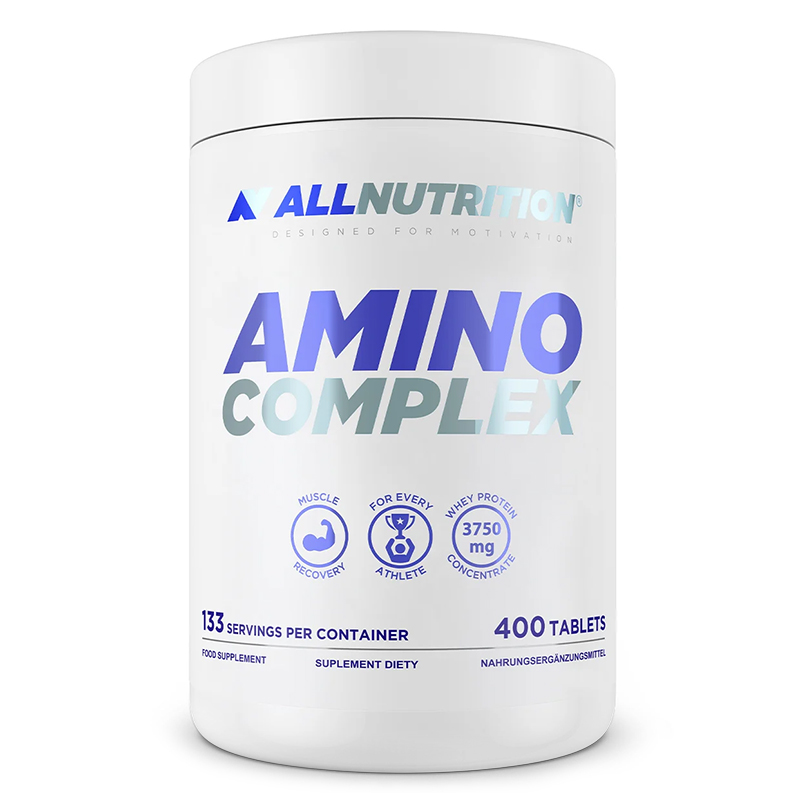 AllNutrition Amino Complex 400 таблеток — комплексна амінокислотна добавка для підтримки м’язового росту, відновлення після тренувань та загальної фізичної продуктивності. Ця формула містить широкий спектр незамінних та умовно-незамінних амінокислот для щоденного застосування спортсменами та активними людьми.