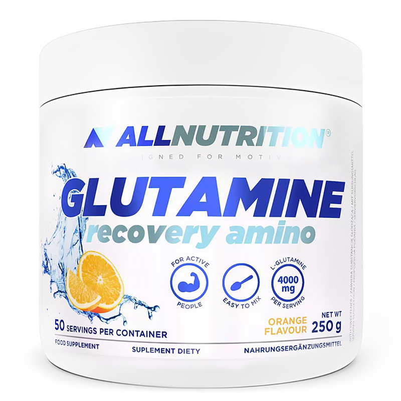 AllNutrition Glutamine Recovery Amino 250 г — порошкова харчова добавка з L-глютаміном для підтримки відновлення після тренувань, зменшення м’язової втоми та підтримки імунної системи. Продукт легко розчиняється у воді або спортивних напоях для зручного прийому до або після фізичного навантаження.
