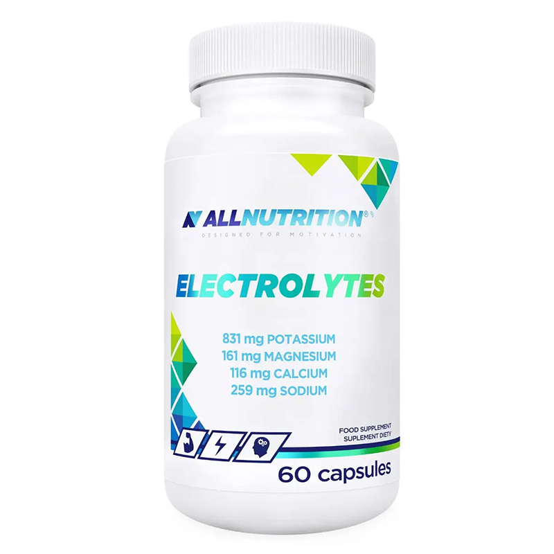 AllNutrition Electrolytes 60 капсул — харчова добавка електролітів для підтримки водно-солевого балансу, нормальної роботи м’язів та нервової системи під час фізичної активності. Капсули забезпечують зручний щоденний прийом для спортсменів, активних людей або в періоди підвищеної втрати рідини.