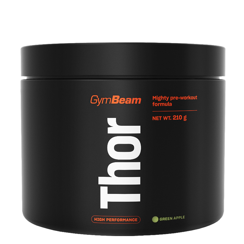 GymBeam Thor 210 г — передтренувальний комплекс для підвищення енергії, концентрації та продуктивності під час тренувань. Порошкова форма швидко розчиняється у воді або спортивних напоях, забезпечуючи швидкий ефект.